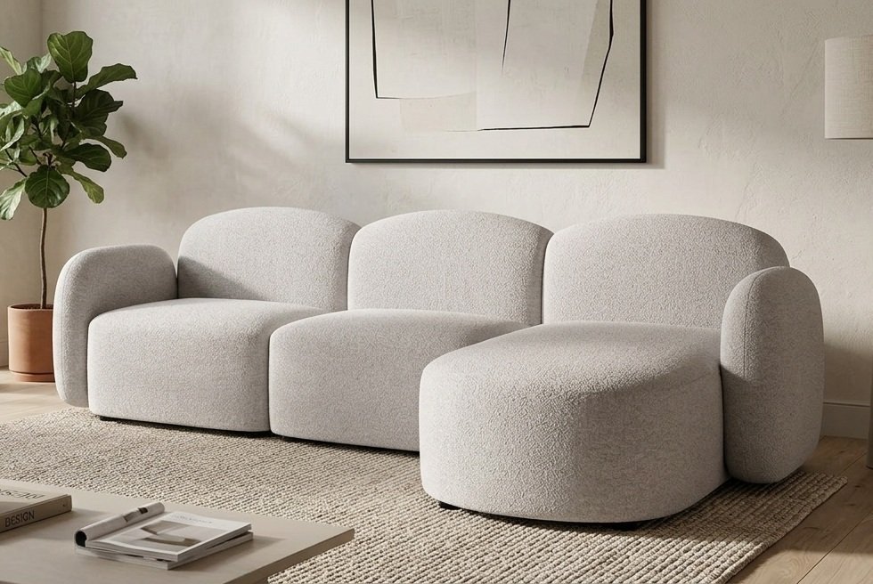 The Cienio Comfort Arc Sofa from LP Furnishing blends modern aesthetics with exceptional comfort. Designed with a smooth curved silhouette and soft bouclé texture, this sofa instantly elevates contemporary interiors. Its sculptural arc design creates a welcoming and cozy seating experience while adding a luxurious statement to your living room.