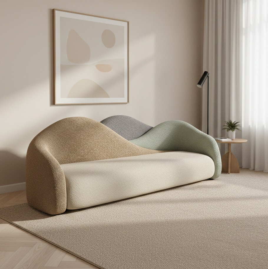 Make a bold artistic statement with the Pastel Trivara Wave Sofa by LP Furnishing, a unique blend of sculptural design and modern comfort. Inspired by fluid wave forms, this sofa features a distinctive multi-tone backrest in soft pastel shades, creating a visually striking centerpiece for contemporary interiors.